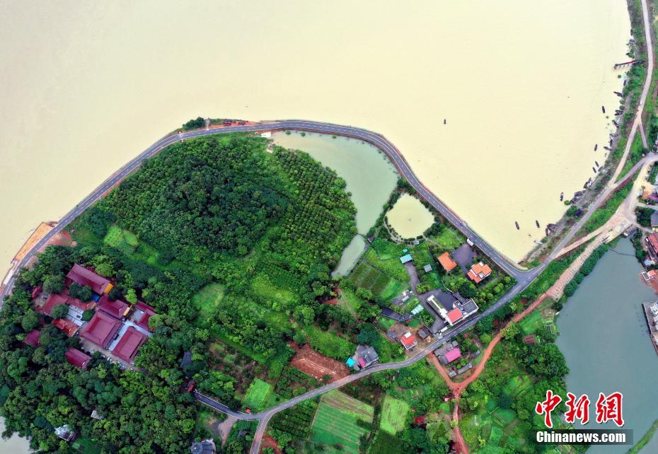 航拍上游洪水汇入南昌湖泊 鄱阳湖水位持续上涨