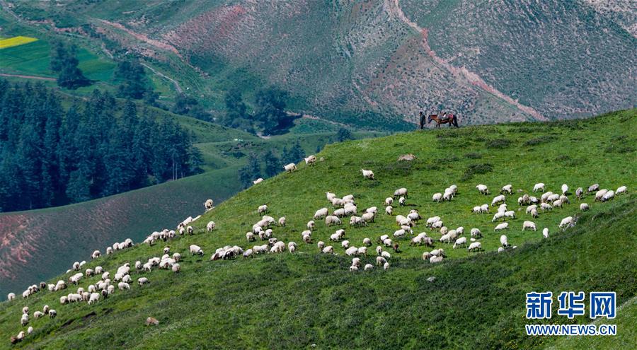 7月12日,牧民在青海省祁连县一处牧场放牧。 新华社记者 刘金海 摄