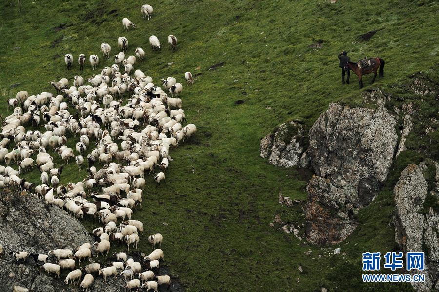 7月12日,牧民在青海省祁连县一处牧场放牧。 新华社记者 费茂华 摄