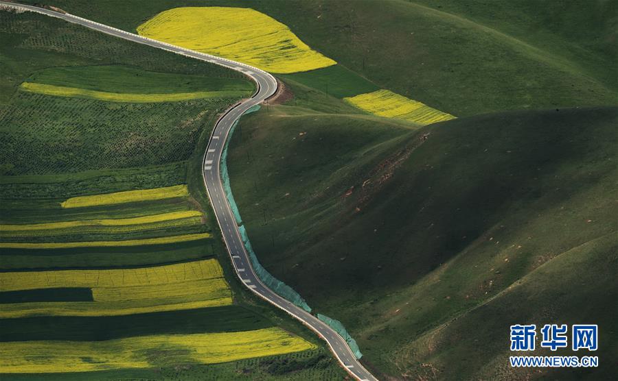 这是7月12日拍摄的青海祁连县境内的油菜花田。 新华社记者 费茂华 摄
