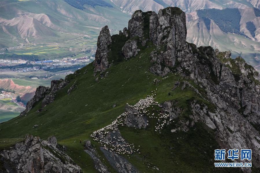 7月12日,牧民在青海省祁连县一处牧场放牧。 新华社记者 吴刚 摄