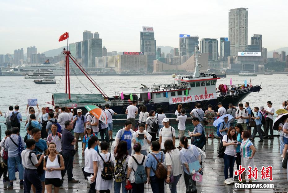 7月20日下午,30余万香港市民在金钟添马公园参加“守护香港”集会,共同守护香港法治的核心价值,维护法治,反对暴力。集会以“反暴力、撑警队、护法治、保安宁”为诉求,表达广大市民支持警方依法维护社会秩序、希望香港社会和平安定稳定的心声。集会组织者称,约有31.6万人参加活动。图为集会期间,众多香港渔船在维港巡游,维护法治,反对暴力。中新社记者 张炜 摄