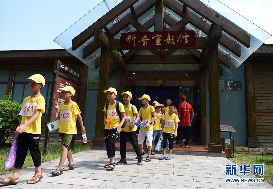 7月21日,暑期爱心托管班的孩子们走出白塔湖国家湿地公园科普宣教馆。 日前,由浙江省诸暨市教育工会和诸暨市店口镇中心学校等单位共同举办的店口镇企业员工子女暑期爱心托管班正式开班。为期一个月的暑期爱心托管班针对店口镇企业众多、部分员工暑期照看子女存在困难的实际情况,为来自全国10多个省份的280多名企业员工子女提供暑期辅导,并组织研学、文体活动等,让孩子们开心过暑假。 新华社记者 韩传号 摄