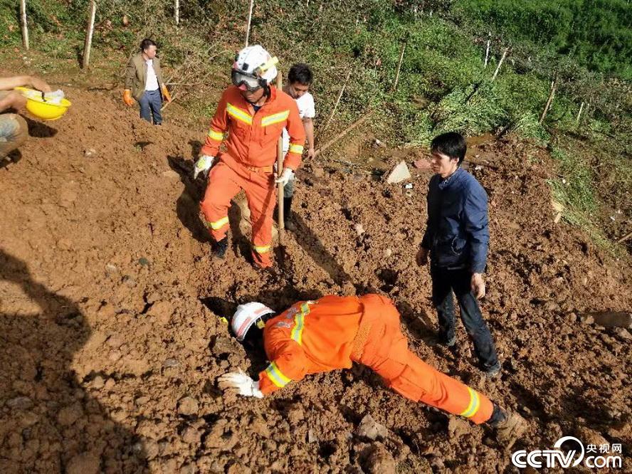 7月23日21时许,贵州省六盘水市水城县鸡场镇发生一起山体滑坡,21幢房屋被埋。截至24日6时,贵州省消防救援总队247名指战员、9支矿山救护队257人、贵阳隧道救援队56人,携带搜救犬、生命探测仪在现场开展人员搜救。消防指战员通过生命探测仪、搜救犬和人工(呼喊)搜索等多种方法搜寻被困人员。目前,抢险救援正在紧张进行,灾情仍在进一步核查中。 (图片来源:应急管理部消防救援局)