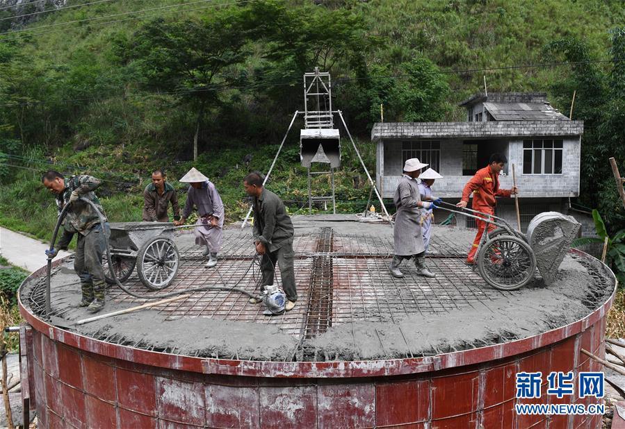 在广西都安瑶族自治县龙湾乡龙焕村大朋屯,当地群众在修建水柜(7月23日摄)。 新华社记者 陆波岸 摄
