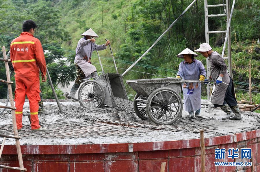 在广西都安瑶族自治县龙湾乡龙焕村大朋屯,当地群众在修建水柜(7月23日摄)。 新华社记者 陆波岸 摄