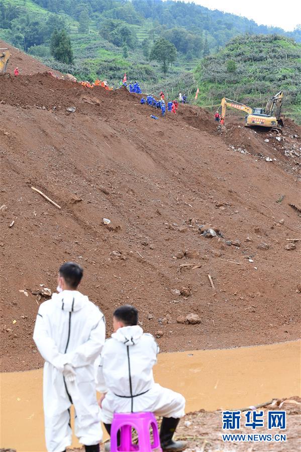 7月24日,救援队员在贵州水城“7·23”特大山体滑坡现场组织搜救。新华社记者 杨楹 摄