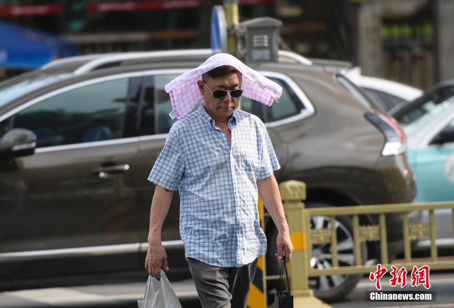 7月28日,市民在高温天气出行。当日,济南市气象台发布高温橙色预警信号。中新社记者 张勇 摄