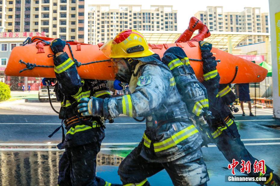 盛夏时节 消防员背负40公斤开展技能大比拼