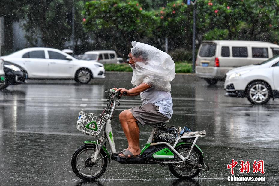 8月1日,广州民众雨中出行。当日,广州受台风“韦帕”影响,全市8区发布暴雨预警信号。中新社记者 陈骥旻 摄