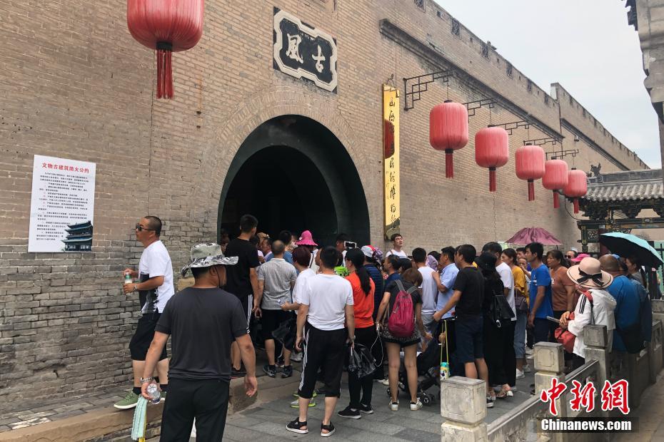 8月1日,山西省晋中市,游客排队前往祁县乔家大院景区参观旅游。文化和旅游部7月31日发布给予山西省晋中市祁县乔家大院景区取消旅游景区质量等级处理决定,祁县文化和旅游局8月1日回应称,将立即开展整治行动,并同步启动调查问责程序,对相关责任人严肃问责。中新社记者 韦亮 摄