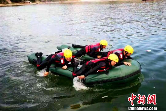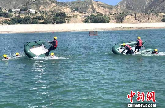 顶着烈日,冒着大雨,兰州市消防支队特勤大队消防员近日举行2019年度水域救援培训。 王建军 摄