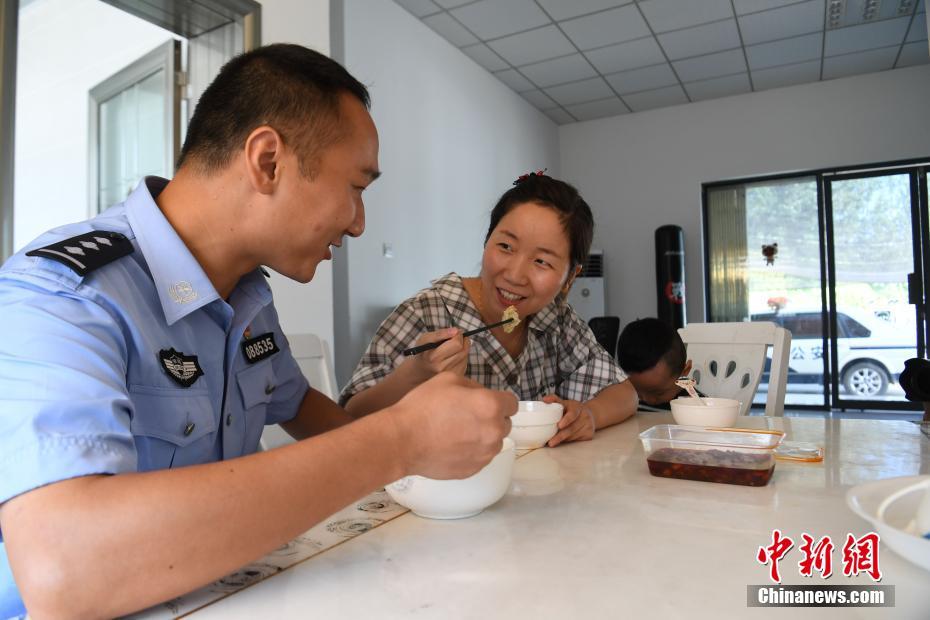 8月2日,茆闻弢和妻子和孩子一起吃早餐。由于工作关系,茆闻弢很少回家,妻儿经常利用休息时间从安徽芜湖来到繁昌看望他。 韩苏原 摄