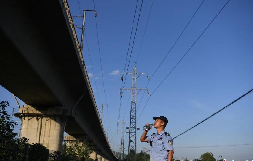 高温下的铁路沿线“守护者”:酷暑巡逻汗洒铁轨