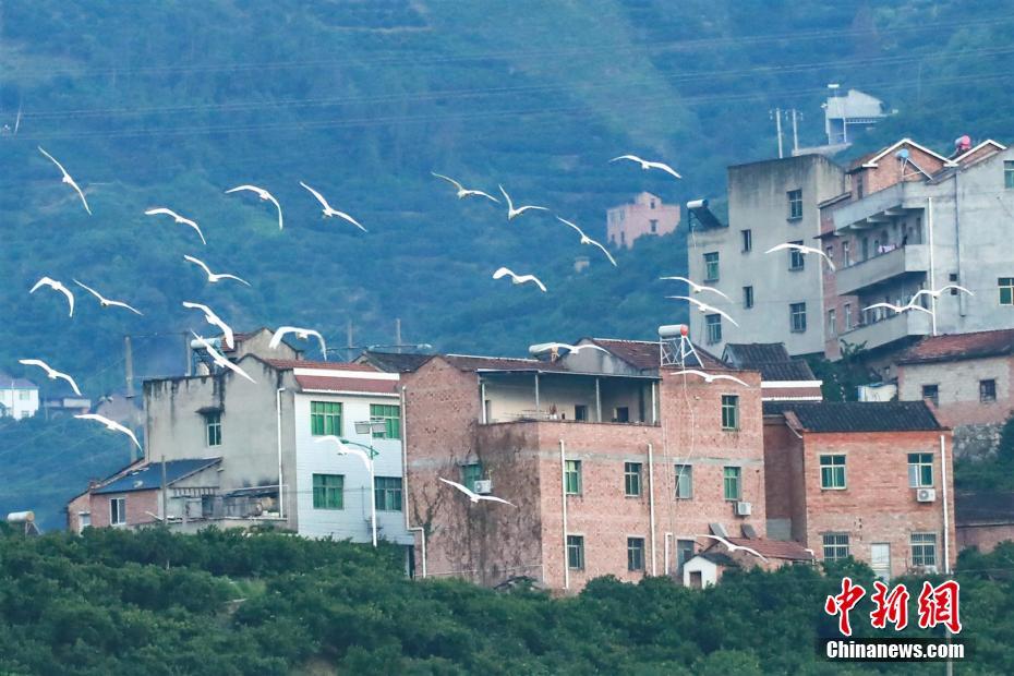 成群白鹭在童庄河畔翩飞。王罡 摄