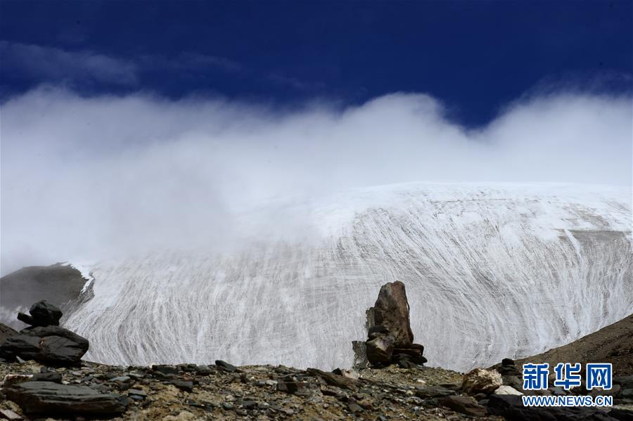 这是在青海省海西蒙古族藏族自治州格尔木市境内拍摄的昆仑山玉珠峰冰川一角(2017年8月19日摄)。新华社记者张宏祥摄