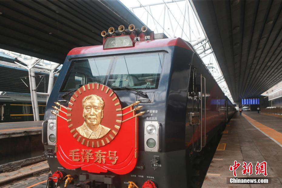8月6日,由“毛泽东号”机车牵引的长沙至北京西的Z2次列车驶入北京西站,标志着“毛泽东号”机车实现安全走行1100万公里,相当于绕地球275圈,再次创下中国铁路机车安全走行新纪录。“毛泽东号”机车诞生于1946年,73年来,“毛泽东号”先后跨越蒸汽、内燃、电力三个动力时代。图为“毛泽东号”机车停靠站台。中新社记者 贾天勇 摄