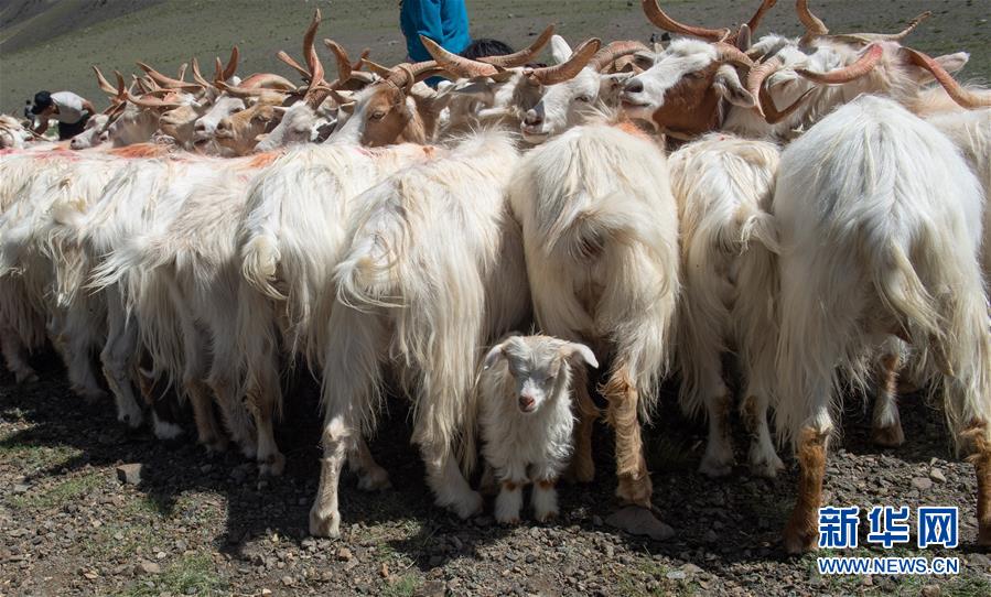 这是在西藏阿里地区日土县多玛乡帕珠贡玛牧业点拍摄的一只小羊(8月4日摄)。 新华社记者 晋美多吉 摄