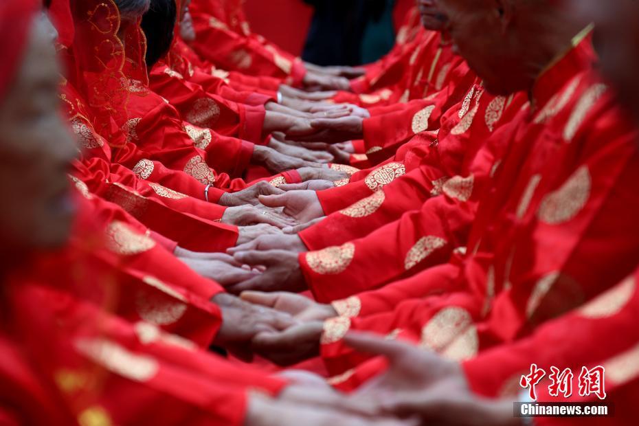 河南洛阳38对老人七夕节参加中式金婚庆典