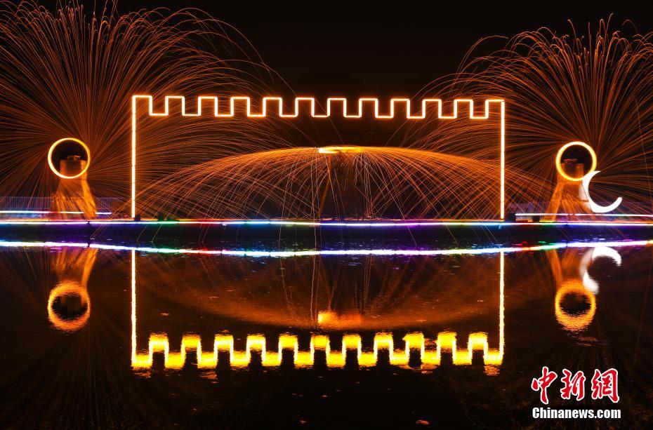 北京世界公园内的非遗打铁花展现了传统技艺的魅力。中新社记者 赵隽 摄