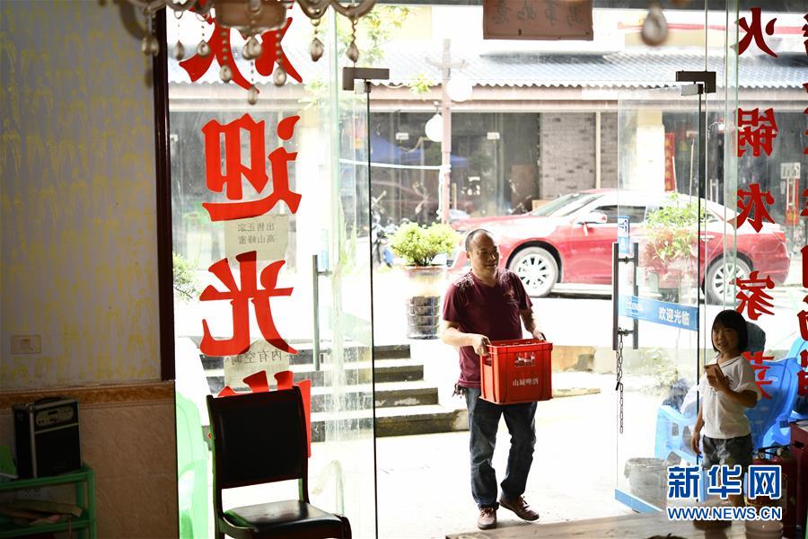 8月7日,张明顺在搬运货物,为营业做准备。 新华社记者 刘潺 摄
