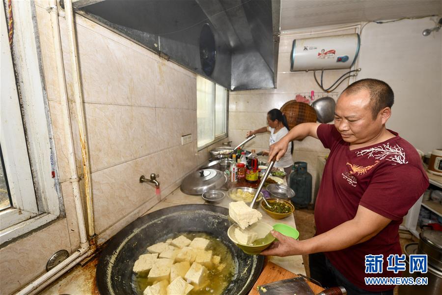 8月7日,张明顺在为游客准备饭菜。 新华社记者 刘潺 摄