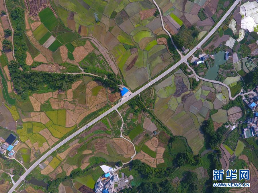 8月8日无人机拍摄的广西融安县潭头乡田园风光。 当日是二十四节气中的立秋,广西融安县乡村的大片稻田美如画卷。 新华社记者 黄孝邦 摄