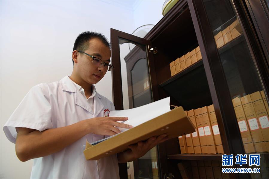 8月8日,黄水根在翻看前来订制假肢的残疾人的资料。 新华社记者 彭昭之 摄