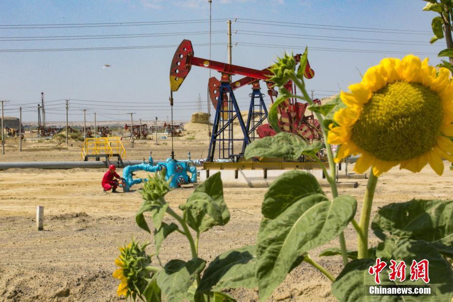 连日来,新疆克拉玛乌尔禾地区的高温已达到39℃,井区的地表温度接近65℃,一阵阵桑拿般的热浪在井区翻滚,酷热难耐。烈日下,新疆风城油田作业区的采油工人们冒着高温“烤验”进行生产。当前正是原油生产的黄金期,也是该作业区新一轮上产的关键期,为保证员工安全和产量不受影响,风城油田积极部署防暑工作,进行安全性能检查、调整工作时间、发放防暑降温药品及西瓜、矿泉水等清凉饮品等,做好高温天气下的安全生产。吴小川 摄