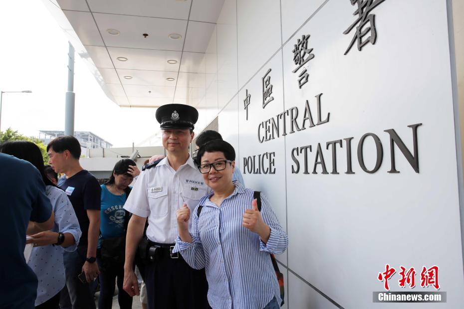 8月10日,“守护香港大联盟”当天在香港各区发起“全民撑警日”活动,呼吁市民携同亲友前往附近警署,向警队送上心意卡或慰问信,向警务人员表达慰问和支持。图为市民响应“全民撑警日”活动。中新社记者 洪少葵 摄