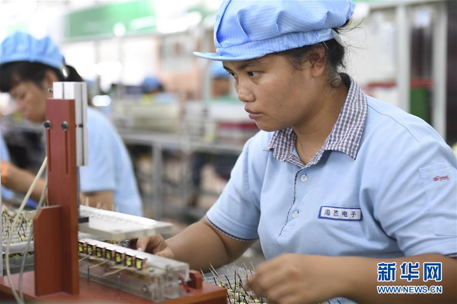 8月13日,贫困户林青兰在兴业县一家“就业扶贫车间”内加工电子产品。新华社记者 曹祎铭 摄