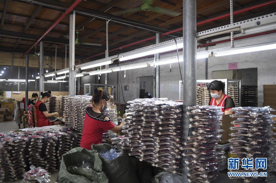 8月13日,工人在兴业县的一家“就业扶贫车间”内加工乒乓球拍。新华社记者 曹祎铭 摄