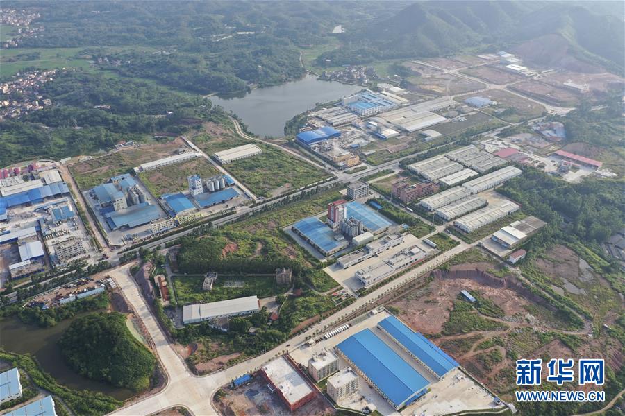 图为8月13日无人机拍摄的兴业县大平山镇健康食品产业园,目前园区内已有9家企业建立“就业扶贫车间”。新华社记者 曹祎铭 摄