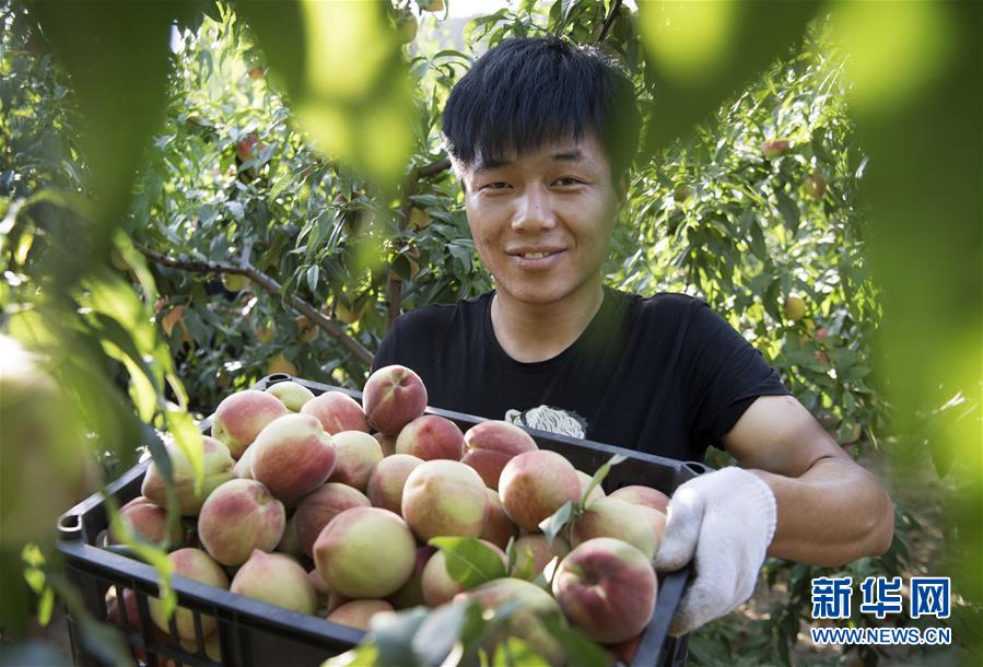 地处黄土高原的陕西省靖边县青阳岔镇高石崖村发挥当地传统种植经果林的优势,引进适宜高原种植的优良“仙桃”品种,发展林果产业。目前全村打造近3000亩“仙桃”园,亩均产值达万元以上。 新华社记者 陶明 摄