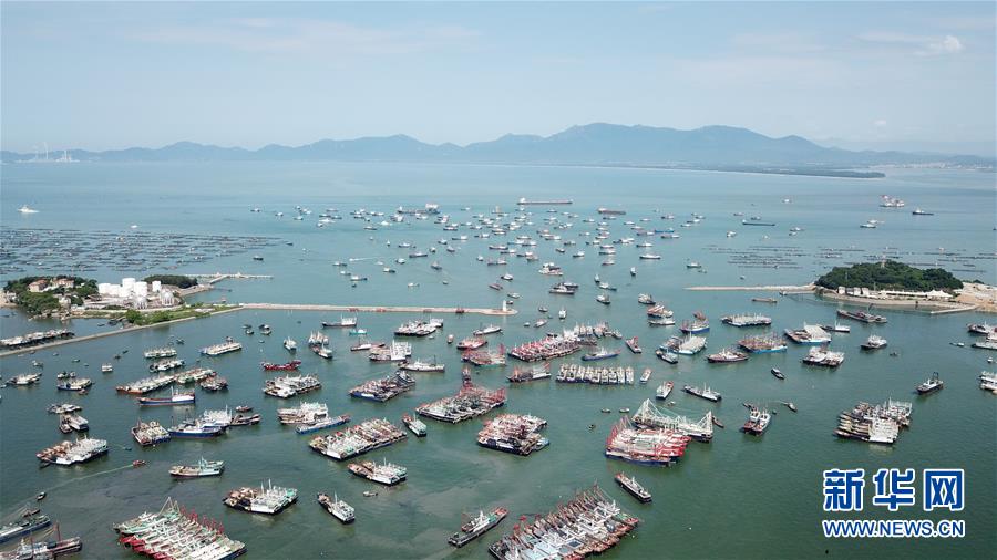 渔港里的渔船准备出海(8月16日无人机拍摄)。 8月15日至16日,第17届南海(阳江)开渔节于在广东阳江海陵岛举行。今年的南海休渔期也在16日正式结束,这一天,渔民们再次开始了在渔船上的辛勤劳作,向广阔的大海进发。 新华社记者 周自扬 摄