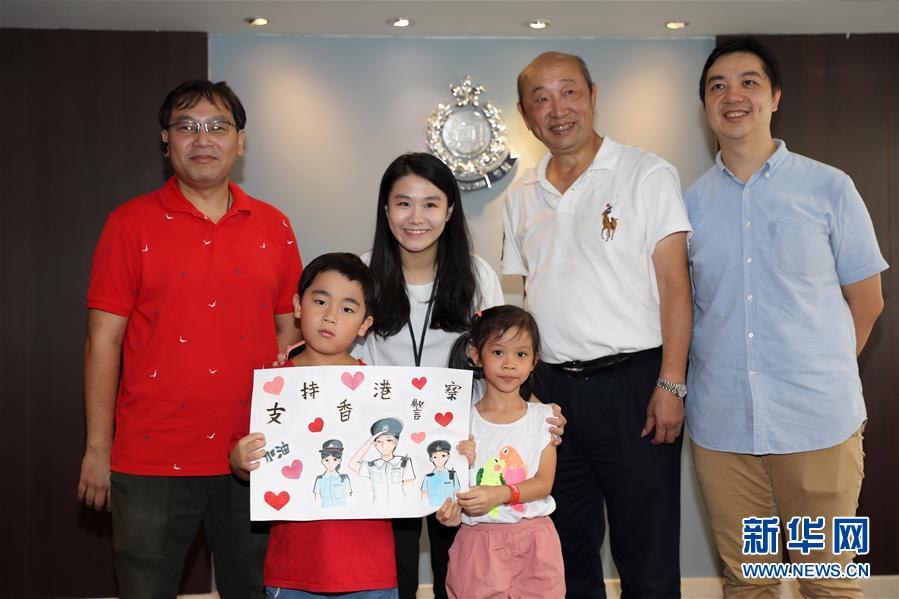 8月16日,香港市民在香港北角警署大楼表达支持警察的心声。 新华社记者 吴晓初 摄
