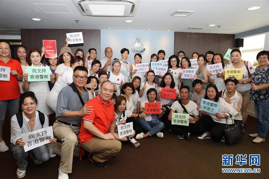 8月16日,香港市民在香港北角警署大楼表达支持警察的心声。新华社记者 吴晓初 摄