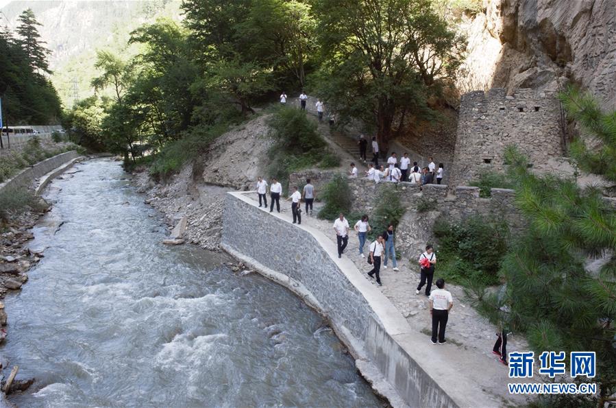 8月15日,游客在腊子口战役发生地参观。 1935年秋,中央红军冲破重围,跨过荒无人烟的茫茫草地,继续向北挺进,抵达天险腊子口。在这里,红军浴血奋战,强夺腊子口,越过征途中的最后一道天险,打通了北上的通道。 新华社记者 罗晓光 摄