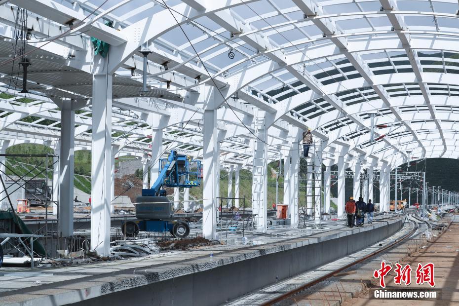 8月16日,京张高铁崇礼支线太子城高铁站正处于最后攻坚期施工,目前该站站房主体结构已完成施工。太子城高铁站总建筑面积11988平方米,其中主站房5990平方米,由中铁六局承建,车站距离2022北京冬奥会张家口崇礼赛区奥运村2公里。中新社记者 贾天勇 摄