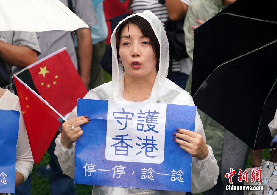 图为民众冒雨高唱国歌。中新社记者 张炜 摄