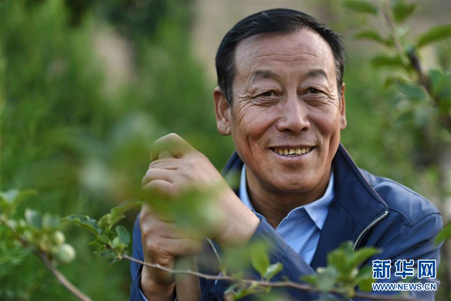 4年多来,李树和种下的一株株小树大多长势良好,一部分试种的桃树和苹果树,如今已经成林挂果。新华社记者 陶明 摄