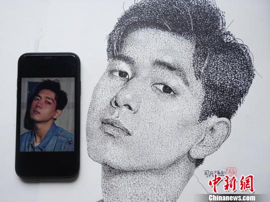 赵龙制作的明星李现“名字画”。 刘栋 摄