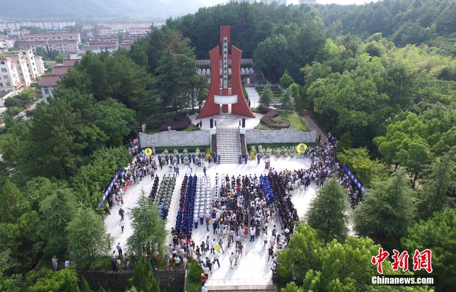 8月19日,浙江金华,吕挺烈士安葬仪式在金华东阳的烈士陵园举行。当日,在浙江湖州安吉县勇救落水民众时英勇牺牲的吕挺烈士骨灰从安吉回到家乡金华东阳,民众自发走上街头为英雄送行。中新社发 潘亮亮 摄