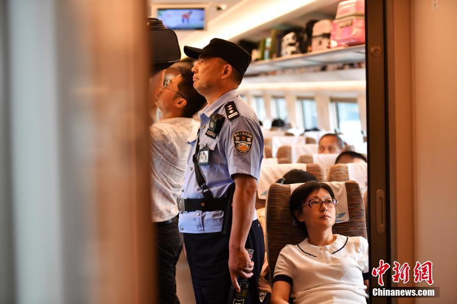 8月20日,在北京西至贵阳北的G81次列车上,北京铁路公安局石家庄公安处乘警支队老乘警郑传军正在各车厢认真巡查。这次“出征”是郑传军从事乘警工作34年来的最后一个班。他几乎值乘过石家庄乘警支队担当的所有线路。无论是春城昆明、花城广州,还是山城重庆、冰城哈尔滨,中国大江南北的铁路线上都有过他的身影,粗略算下来,郑传军这几十年走了约700万公里,相当从地球到月球打9个来回。翟羽佳 摄