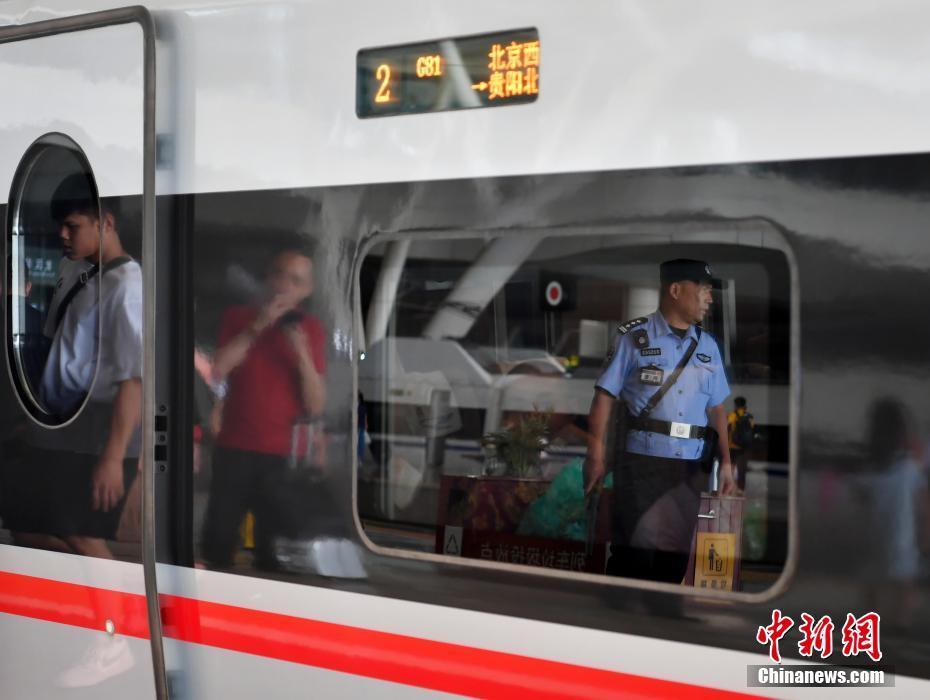 8月20日,在北京西至贵阳北的G81次列车上,北京铁路公安局石家庄公安处乘警支队老乘警郑传军正在各车厢认真巡查。这次“出征”是郑传军从事乘警工作34年来的最后一个班。他几乎值乘过石家庄乘警支队担当的所有线路。无论是春城昆明、花城广州,还是山城重庆、冰城哈尔滨,中国大江南北的铁路线上都有过他的身影,粗略算下来,郑传军这几十年走了约700万公里,相当从地球到月球打9个来回。图为工作中的郑传军。翟羽佳 摄
