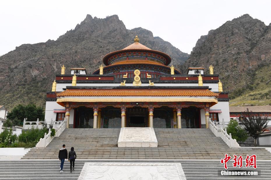 8月23日,游客经过广宗寺大经堂。广宗寺位于内蒙古自治区阿拉善左旗,贺兰山西麓的一个山谷中。寺庙始建于1757年,是由班自尔扎布台吉之子阿旺多尔济遵照其师六世达赖喇嘛遗愿所建,曾供奉有六世达赖喇嘛仓央嘉措的法体。 中新社记者 刘文华 摄