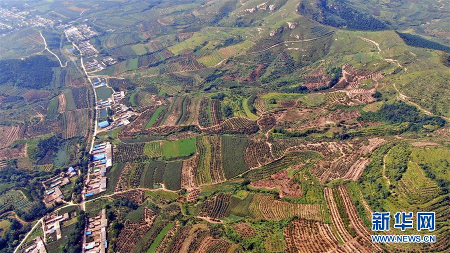 8月21日航拍的义县张家堡镇果园。 新华社记者 杨青 摄