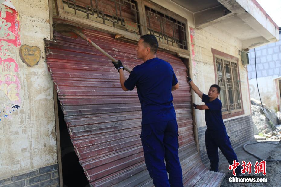 8月24至25日,四川省森林消防总队派出30名消防救援人员深入遭受特大山洪泥石流的汶川县绵虒镇羌锋村,帮助当地受灾群众排除安全隐患、清理洪水过后留下的淤泥以及转移重要物资等。同时重点帮助烈士、军属、老人等急需帮助的家庭尽快恢复生产生活。此外,森林消防救援人员还配合大型机械将淤泥、树干等装上清运车运走。森林消防救援人员已先后帮助15户居民清淤,转移家具、电器等重要物资29件,排除2户受损民房倾斜等安全隐患,清洗住宅区1400余平米。目前,现场清淤、清洗以及搬运物资等救援工作仍在全力进行中。图为森林消防救援人员帮助受灾户打开变形的卷帘门,方便清理屋内的淤泥。彭科 摄