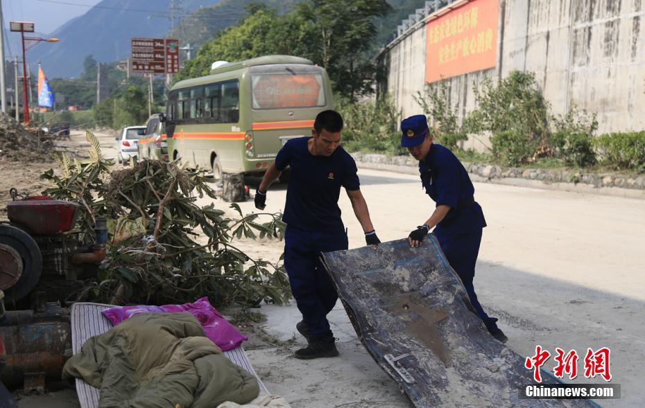 汶川暴雨灾害:森林消防帮受灾户清淤清洗尽快恢复正常生活