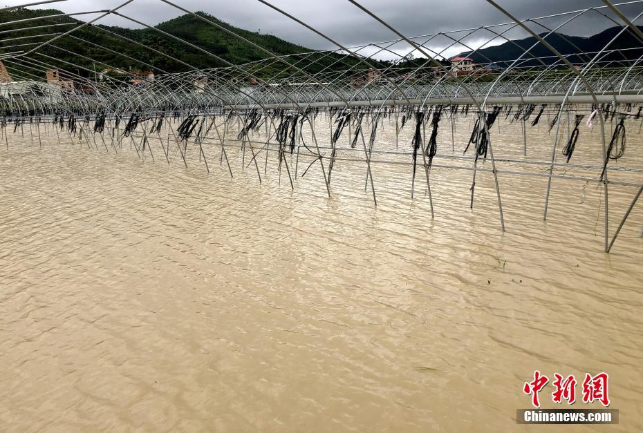 8月25日上午07时25分,今年第11号台风“白鹿”在福建漳州市东山县沿海登陆,漳州市各地区出现不同程度的风雨天气和灾情。图为漳浦县官浔镇下炉村百余亩甜椒被淹。中新社发 吴晟炜 摄